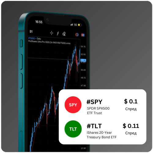 Таблицата показва условията за търговия с борсово търгувани фондове в платформата MetaTrader 5. Колоната Марджин Pro показва марджина, който се прилага за професионални клиенти. Минималният обем за търговия е 1 дял (1 лот).