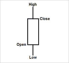 Next, you plot the opening price by drawing a horizontal line through the vertical line, or wick. After you have plotted the opening price, you plot the closing price by drawing another horizontal line through the vertical line. Lastly, you fill in the area between the opening price and the closing price. This area is called the body of the candlestick.