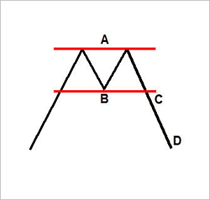 Breakout point (C) - the point at which the currency pair breaks up above the horizontal level of resistance (double bottom), or the point at which the currency pair breaks down below the horizontal level of support (double top).