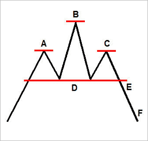Head (B) – higher horizontal, or slightly angled, level of resistance (head-and-shoulders top), or a lower horizontal, or slightly angled, level of support (head-and-shoulder bottom).