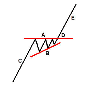 Support level (B) – horizontal level of resistance (bullish, or ascending triangle), or a down-trending level of resistance that is converging with the support level (bearish, or descending triangle).
